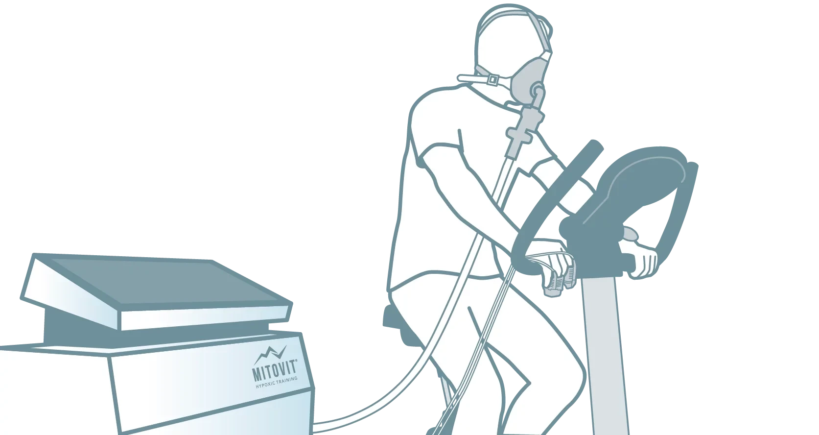 MITOVIT® Hypoxietraining findet in der Praxis in einer entspannten Situation im Liegen statt. Die Anwendung wird als angenehm empfunden und führt bei vielen dazu, dass sie währenddessen entspannen und einschlafen. Im Gegensatz zum Höhentraining der Sportler, findet während des Hypoxietrainings in der Regel keine sportliche Aktivität statt. Um die Reize der physischen Belastung nachzuahmen, wird beim MITOVIT® Hypoxietraining mit einer stärker reduzierten Sauerstoffkonzentration gearbeitet. In der Regel findet ein Höhentraining der Sportler auf einer Höhe von ca. 2.000 Metern statt, welches einem Luftsauerstoff von ca. 16 % entspricht. Sportler, die eine Ergänzung suchen, um ihre Leistungsfähigkeit zu steigern, sollten das Hypoxietraining mit MITOVIT® während moderater körperlicher Belastung durchführen, beispielsweise auf dem Fahrrad oder dem Laufband.